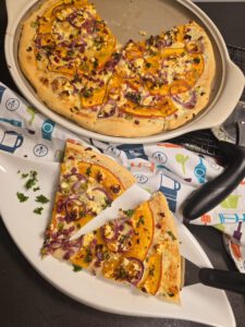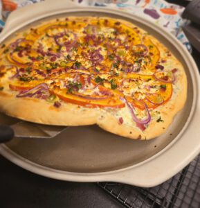 Schaut mal wie gleichmäßig der Flammkuchen gebacken ist und wie toll er sich löst.