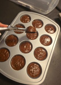 Teig mit dem Edelstahlportionierer auf die Mulden der Muffinform aufteilen