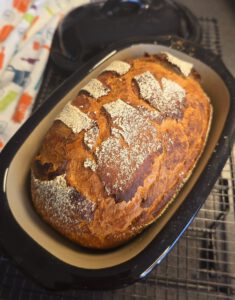 Nach der Backzeit das Brot direkt aus dem kleinen Zaubermeister stürzen und auf einem Kuchengitter auskühlen lassen