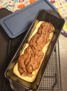 Etwas mehr als die Hälfte des Teiges in die Kastenform geben und glatt streichen