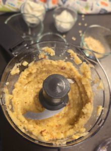 Apfel in Stück, Banane in Stücken und Nüsse in den Elektrischen Multi-Zerkleinerer "Up & Down"geben