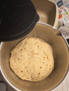Teig in die mittlere Edelstahlschüssel geben und etwa 1 Stunde gehen lassen