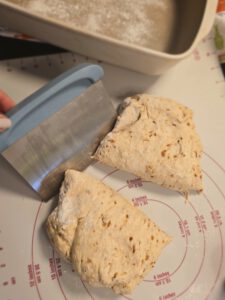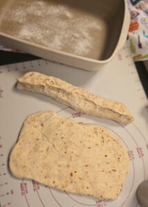Teiglinge in die Ofenhexe legen, bemehlen und einschneiden.