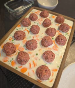Hackbällchen ebenfalls darauf verteilen