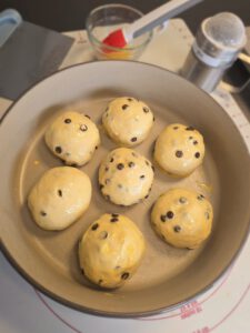 Teiglinge in die Runde Ofenhexe setzen