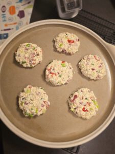 Dann das Mehl zugeben und vermengen (klappt am besten mit den Händen)