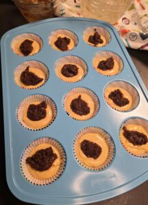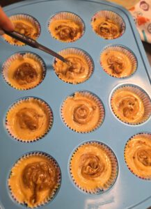 Teig auf die Papierförmchen aufteilen