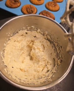 Für das Frosting die weiche Butter hellgelb aufschlagen