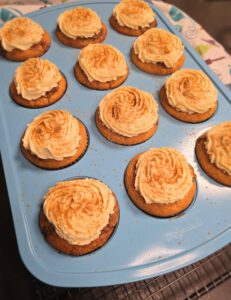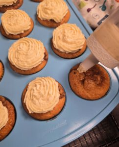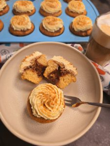 Creme in die Garnierspritze füllen und die abgekühlten Cupcakes damit verzieren