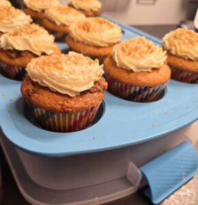 Cupcakeform in den Backofen stellen, auf einen Gitterrost mittlere Schiene, Backzeit ca. 20 Minuten